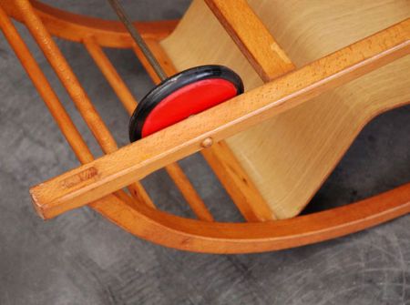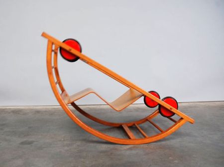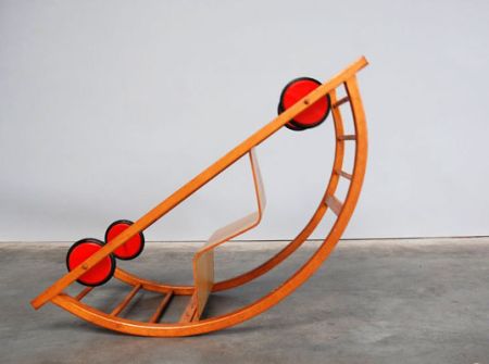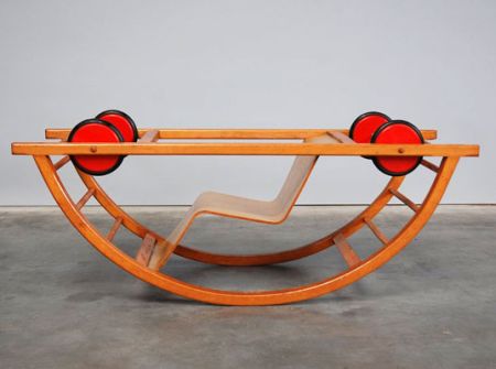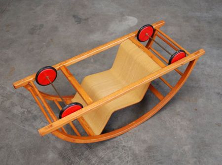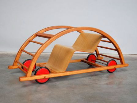 这辆两用玩具车早在上世纪50年代就由两位德国设计师提出了设计想法。如今,一家公司看中了它在儿童玩具市场的广阔发展空间,经过改进,将其推入市场。它既可以当作玩具汽车,也可以将其翻转过来,成为一个舒适的摇椅。中间的座椅部分采用胶合板制成,两面都可以获得舒适的感觉。