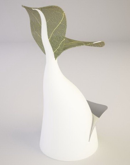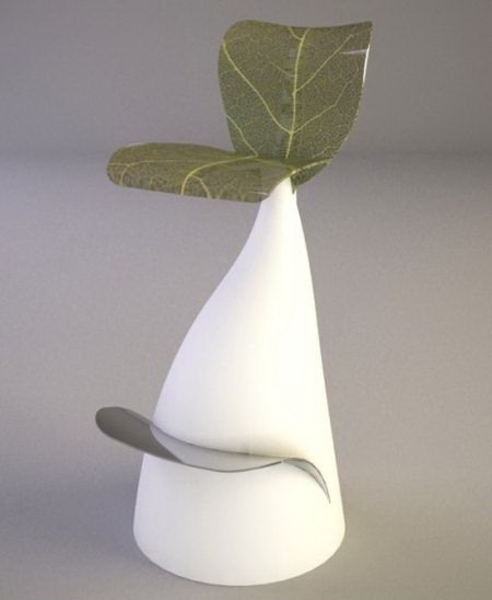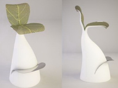 设计师从大自然生长的植物中获取灵感,设计了这款外形与众不同的吧台椅。椅子的主体由亚克力材料和玻璃纤维制成,座面则用织物材料模仿真实的叶片经络。整个椅子形态舒展,别有一番自然风味。