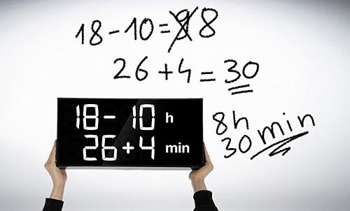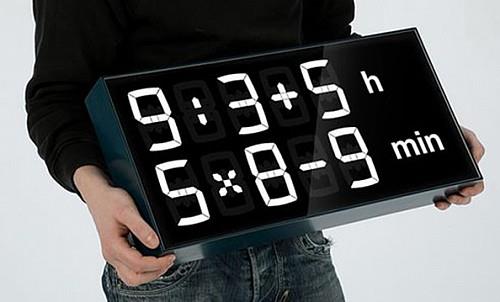Albert数字时钟有两行数字显示,上为“时”,下为“分”,那时间怎么看呢?很简单,只要你会加、减、乘、除,通过计算获得“时”和“分”的数字,这个数字就是当前你想要的时间。当然如果你算错了,那可就麻烦了,如有重要的约会,赶火车、赶飞机什么的,那就错过或是赶早了,类似的时钟玩玩就好。