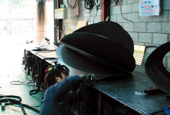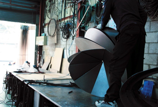 花椅是由韩国设计师Eerang Park设计,花椅由8 块折叠钢板组成。每块钢板都围绕一个中心点安装,形成扇形。钢板和钢板之间夹角为35 度,看起来每块钢板都叠在另一块钢板之上。各个钢板作用各异,用的是椅腿,有的是椅背,有的是椅面,有的是椅子扶手。