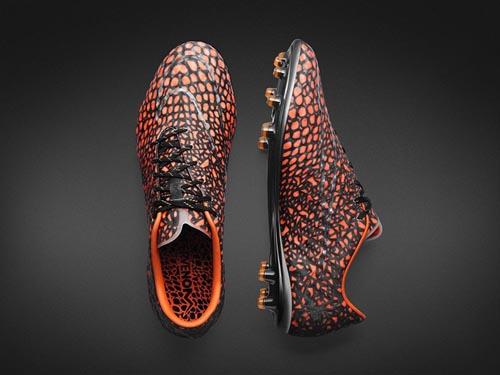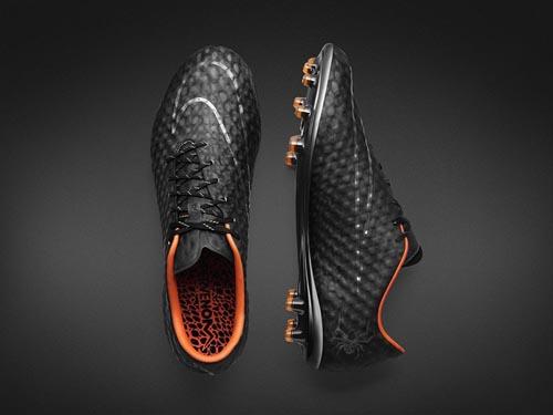 耐克发布了一款会变色的足球鞋,设计师在鞋面上使用了特殊的黑色热感材质,此种材质遇热后可变色。球员在场上积极的奔跑会让鞋内腔温度升高,随着温度升高鞋身也由黑色转变成亮眼的橙色斑点。然而当运动员脱下球鞋,随着鞋腔内稳定降低,球鞋外表面又会迅速变回全黑色。