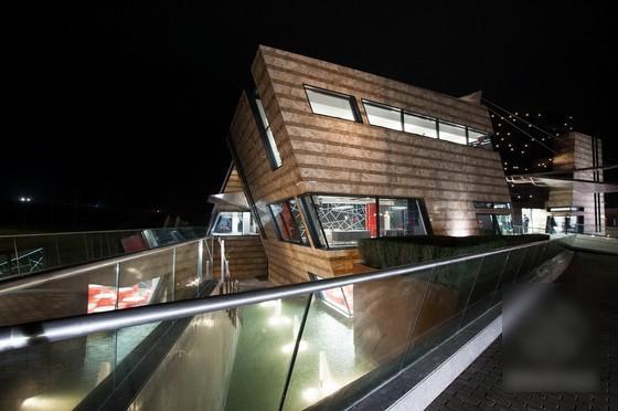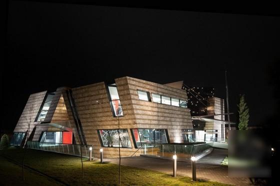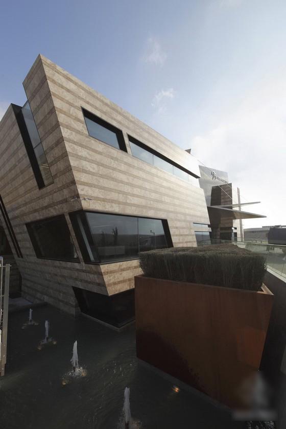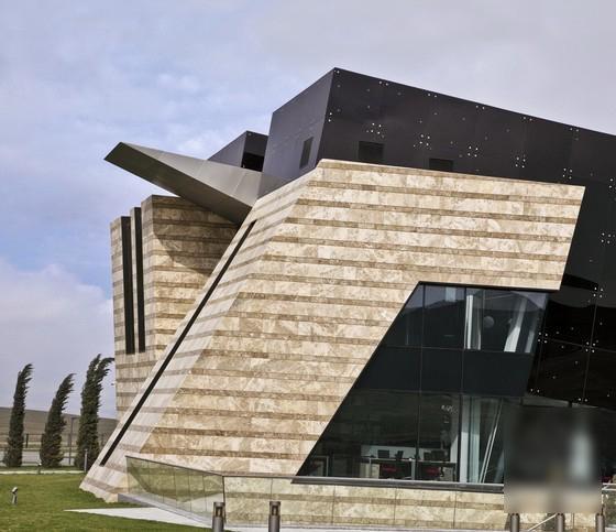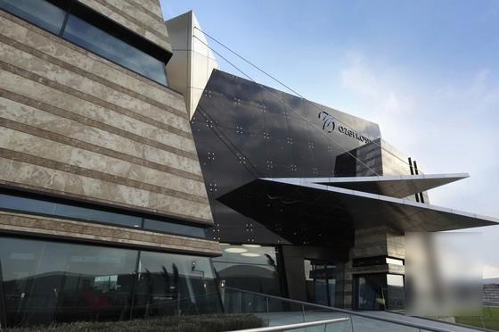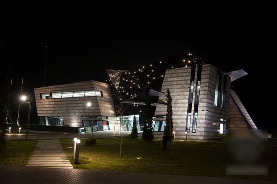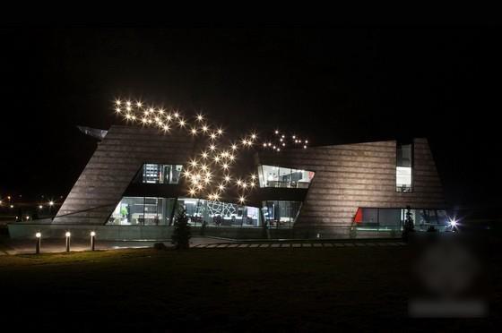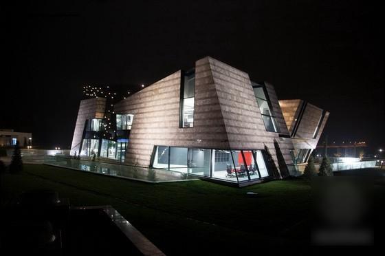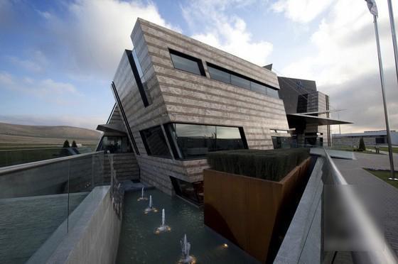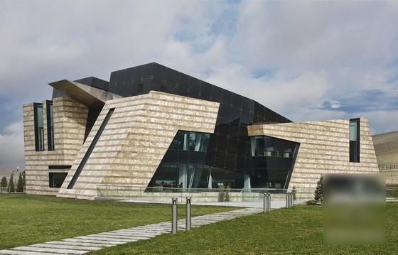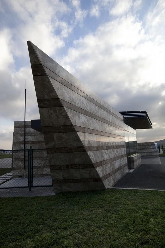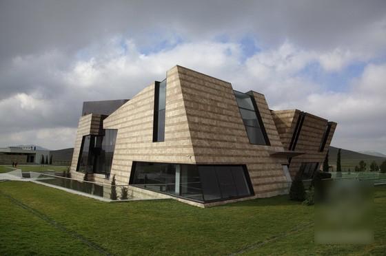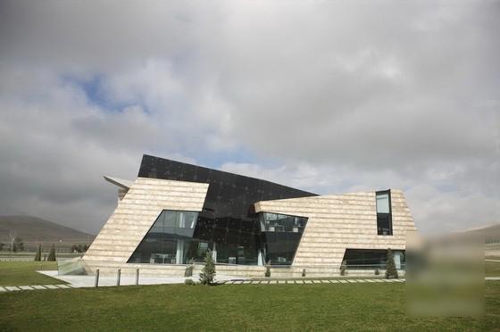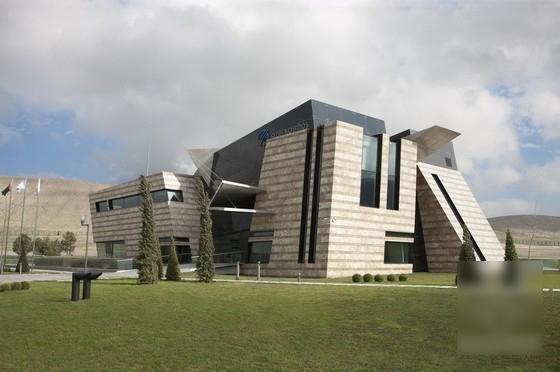 该建筑是Azercosmos开放式股份公司的主营卫星地面控制站。总地盘是10公顷。该建筑群包括4栋建筑:主体大楼,技术大楼,进入站,遮顶快易泊。项目的创意是从天堂落入人间的四大块巨石和眼泪,采用了解构主义风格。建筑形式是未来主义、至上主义,象征的是宇宙和它的征服者,甚至建筑内部也采用了这种风格。建筑内部设有卫星控...