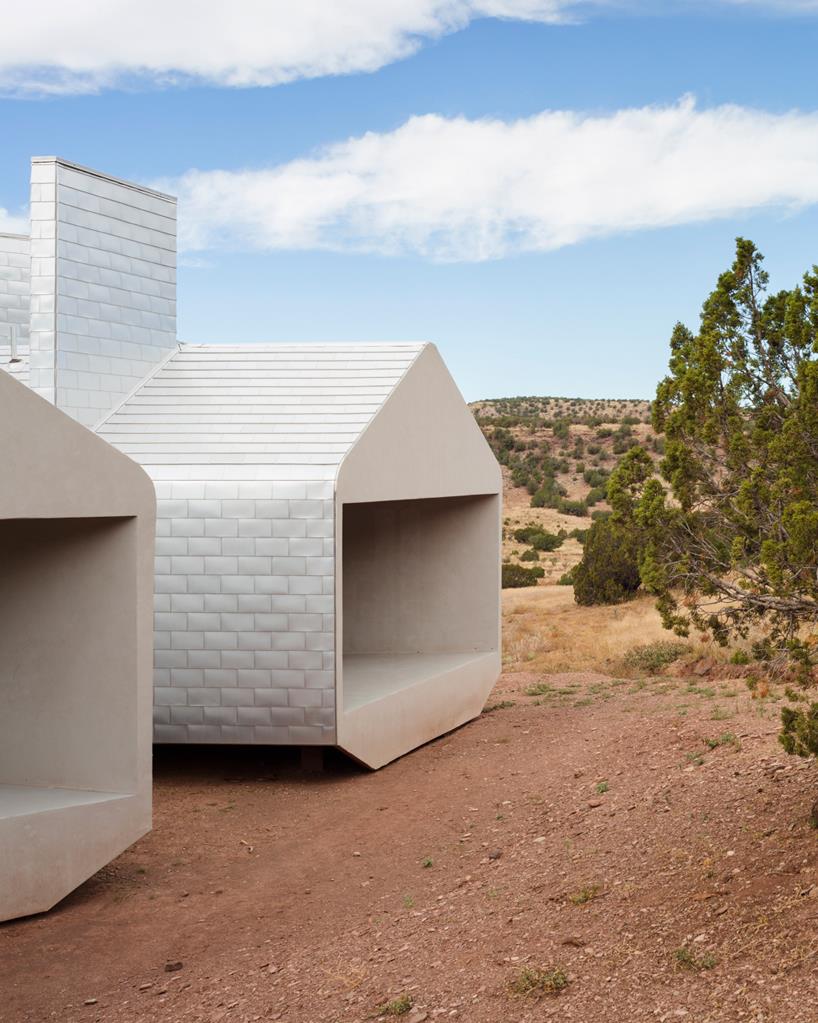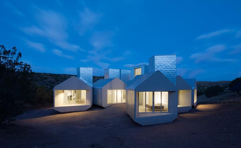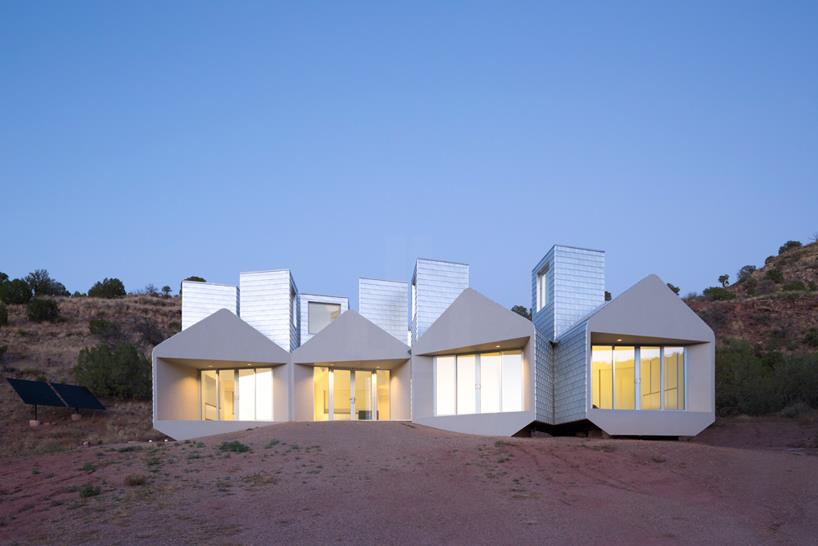 纽约MOS建筑事务所设计的“元素住宅(element house)”由户外艺术博物馆出资建设,坐落于新墨西哥州的荒漠中央。项目为一组银色的体块,SIPS(结构隔热板)构成的住宅是单一的整体,可以利用无源系统独立运行,例如太阳能、LED照明和循环水。