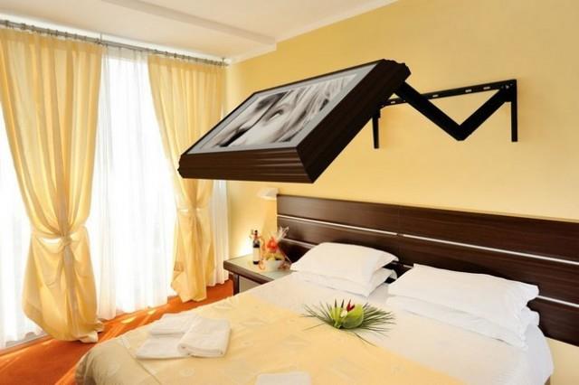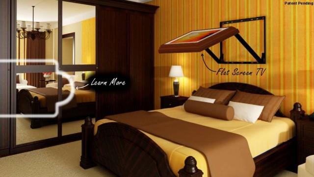 有多少童鞋喜欢躺在床上看电视,把电视安放在床的对面多多少少其实都是占地方的。不如改个策略吧,看看人家的装修。平时就是一副画,需要的时候拉伸出来,超级方便有木有。