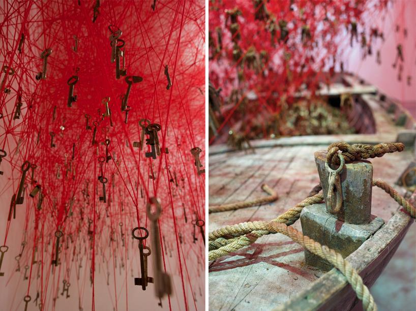 在2015年的威尼斯双年展上,当游客们进入日本馆,便会立刻被一片红色的空间所感染,该馆被一片红色充斥,展馆的天花板和墙板都采用红色,展馆入口蜿蜒曲折,由一片色纱组成,色纱的设计风格十分生动活跃。该项目是由日本艺术家chiharu shiota设计,被命名为“手中的钥匙”,该项目景观中,超过50,000把钥匙悬挂在一团交互编织...