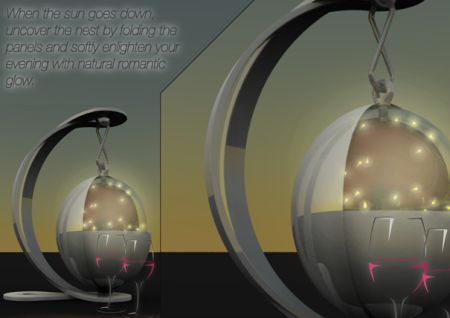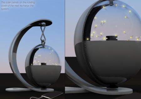 夏日夜晚萤火虫漫天飞舞,是得到许多人认可的浪漫情景。这款现代化灯具,从这一场景得到启发,仿制了萤火虫飞舞的效果,十分有趣。这款灯的基座中配备了无线系统让电子“萤火虫”可以亮起来,同时灯罩内的动力泵让“萤火虫”动起来,制造舞动的效果,触碰灯罩时灯光颜色还可以改变。这款灯的外部附带了折叠式太阳能板,在白天...