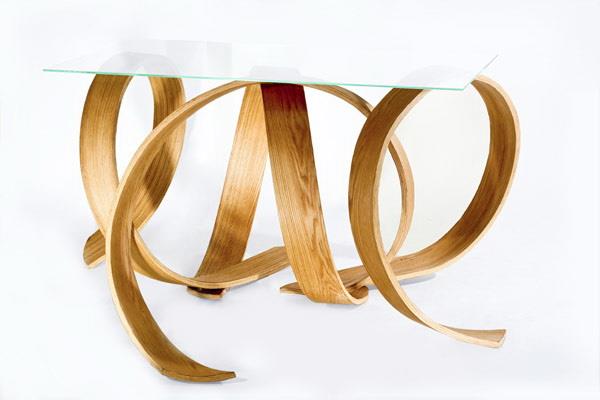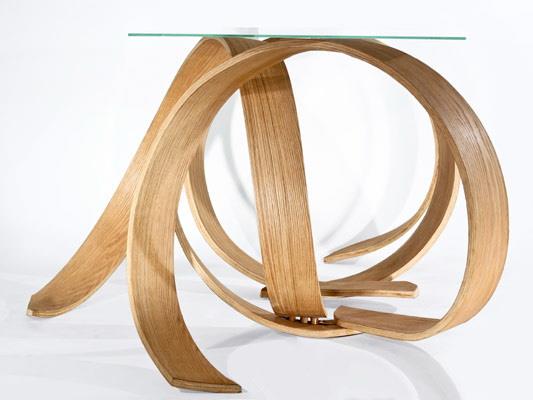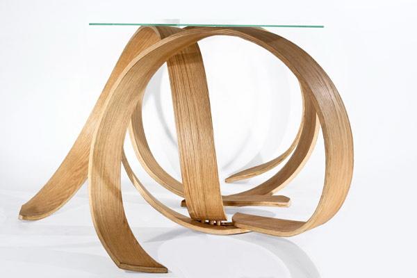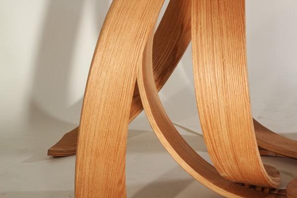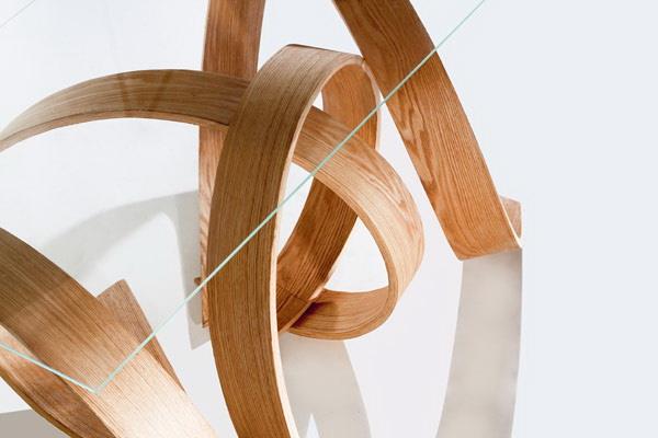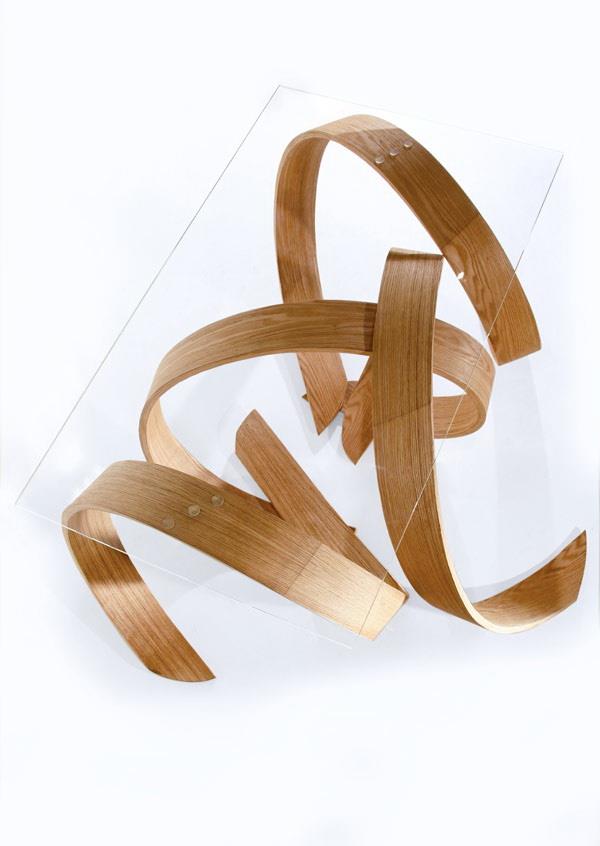 该设计的灵感来源与我们身边的大自然中的元素,树木的根抓住土地的状态。弯曲的硬木片和生化树脂对环境的危害很低,且具有更高的安全性,看似设计错乱,实则整洁有序。