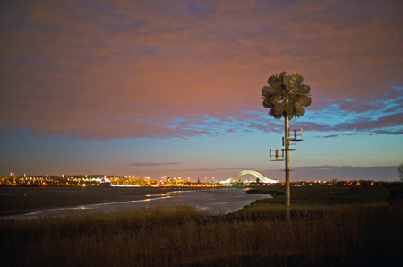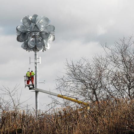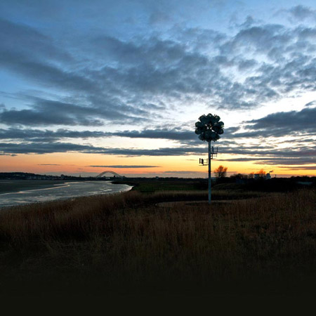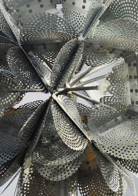 这款名为“未来花”的雕塑是由英国设计师在墨西河边建造的。它是一朵高达14米的金属花。花瓣是用穿孔镀锌钢板制成的,花朵中间装有LED灯,并配备小型风力发电机为其供电。在夜间,这朵花会发出光亮,装点着威德尼斯的夜空。我们还曾为您介绍过该设计师的巨型风琴,恰巧也是一座和“风”有关的雕塑。