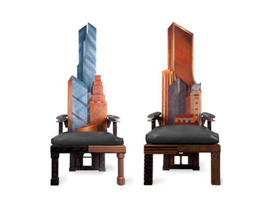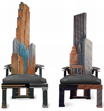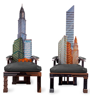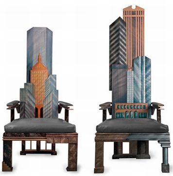 这套颇有中世纪风格的高背椅被设计师命名为曼哈顿系列。正如名字所示,这套6英尺高的高背椅椅背造型皆为纽约的知名地标建筑,涵盖了40座大厦。这些建筑都按照原始地理位置和高度比例状况,被设计到椅背当中。巧心构思的设计师成功地将现代元素与古式座椅融合在了一起。