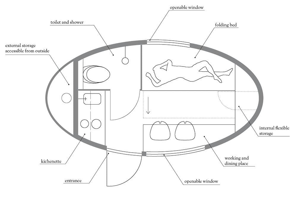 该项目是对一个小房屋的设计,被命名为“生态小屋”,它主要是靠太阳能和风能发电来维持运转的。房屋的离网型支柱几乎可以全年处于延展状态,因此,它可以当做微型住宅,小屋舍,弹出式酒店,人道主义性质的单元房或者甚至是电动汽车的充电站来使用。室内的家居产品包括双人床,桌子,小厨房,小仓库以及可以洗浴的卫生间。这...