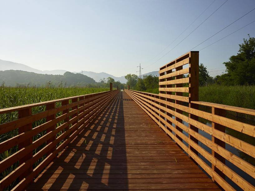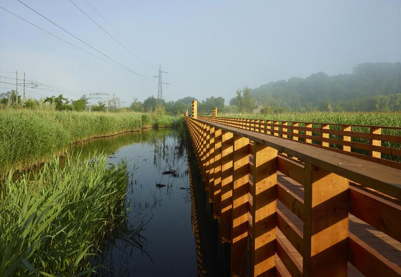 在意大利bozzano火车站和马萨罗萨市中心之间有一块被忽视的1千米长的狭长地块,之前这里是稻田,现在改造成了“莲花”人行道和自行车道。场地原是一片衰败之相,公众不愿意走进去,因此,当务之急是重新改造,造福社区。“莲花”由microscape公司负责,旨在建立自然、耕作和基础设施之间的平衡。