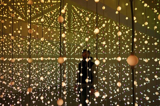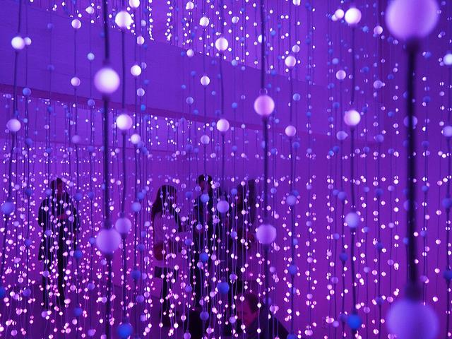 如同时光隧道般的体验。设计师Squidsoup使用了8,064盏灯,在这个像素化的空间,他使用Ocean of Light的科技产品创作,它有单独控制的3D网格组成。利用这个可定制硬件,设计师可以在现实世界创造出表现音乐和环境的动态灯光画面。