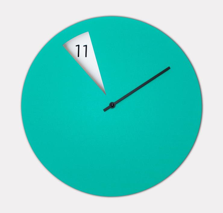 freakish极简挂钟。这个手工制作的设计直径30cm,厚度2 cm,拥有清晰锐利的表现方式——钟表上分钟的变化会改变设计形态,增加更多细节。设计师选用塑料材料,并搭配多种颜色。