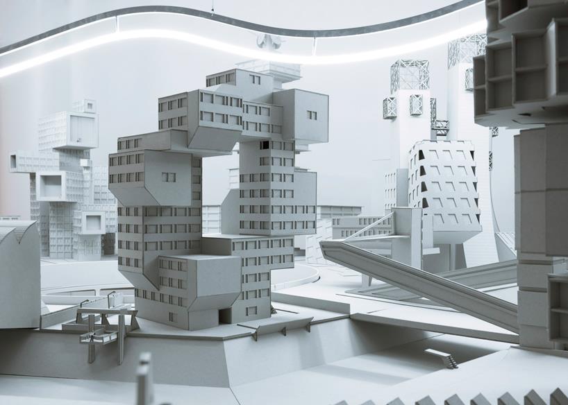 瑞士儿童服装品牌l’asticot委托bureau A事务所为他们在日内瓦的旗舰店创造一处独特的展示空间,以展出他们的收藏。该项目设置在了由混凝土地面和悬浮的云型荧光灯构成的犹如漫画的室内空间之中,焦点是建筑形式的装饰品。椭圆形的桌子上放置着由构成主义类型建筑构成的微缩版城市模型。这种沉浸式体验的展示方式允许孩子们在...
