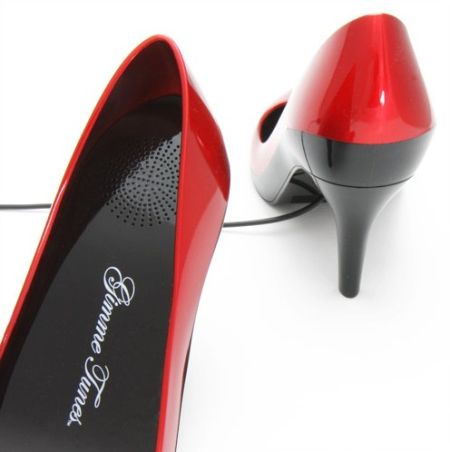 这双靓丽的深红诱惑高跟鞋,其实是一款造型特别的音箱。它采用USB接口进行连接,不仅适用于电脑,还可以用在有USB接口的手机和MP3上。