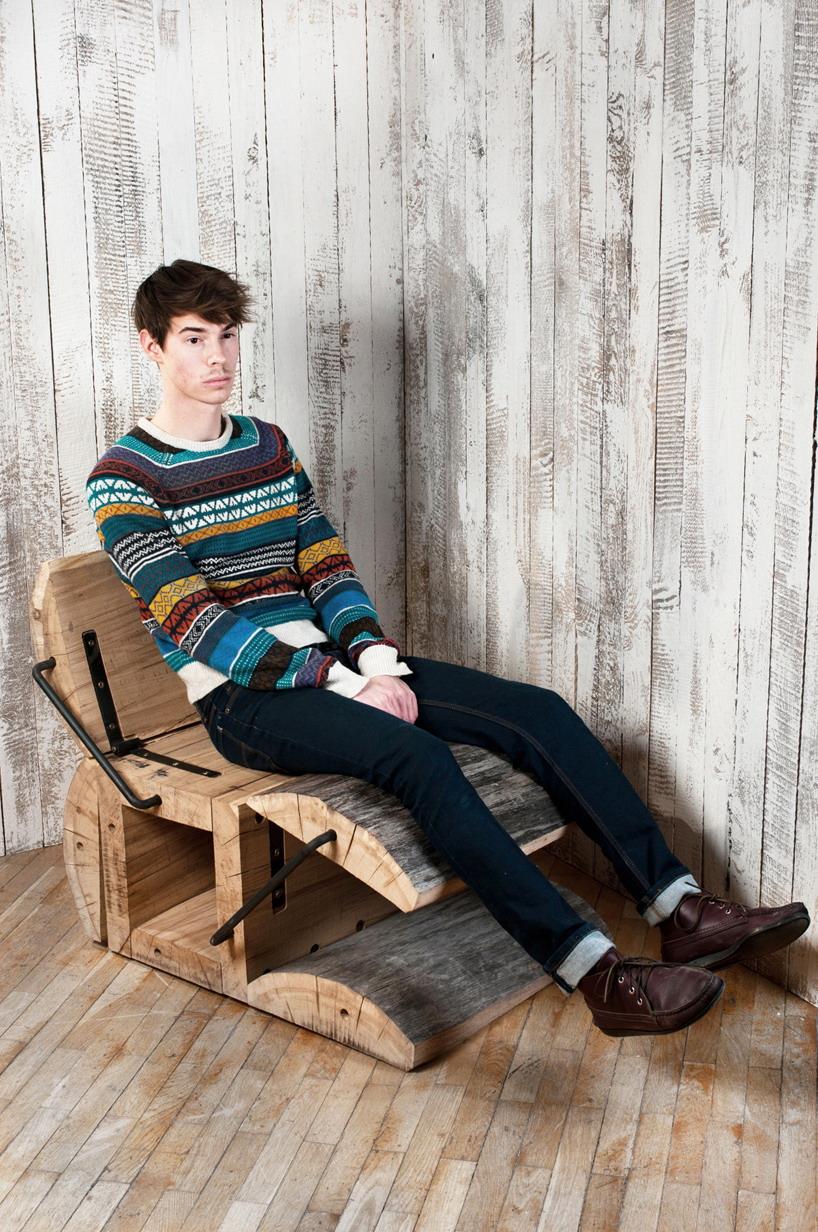 匈牙利architecture uncomfortable workshop用制作木梁架剩下的废弃橡木料设计制作了这个“waste less chair”——这是一把可伸展的座椅,可以打开变形,形成两种座椅,一种是摇椅,另一种是有支腿的躺椅。不用的时候,这个椅子可以完全收缩,折叠成圆柱形的树干形状。