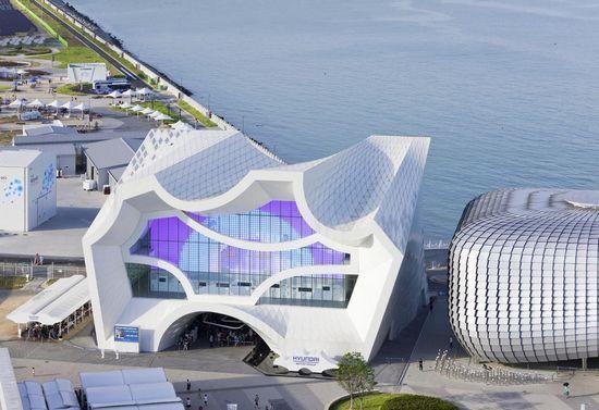 丽水世博会韩国现代汽车集团馆(Hyundai Pavilion)展现了企业的品牌形象,正在建立人类历史上的创新运输。建筑结合了波浪和现代汽车集团运动。虽然“运动想象”的概念被转载,但这是到现在为止从来没有达到的再生未来的想象力放大的可能性。通过再现功率表达高科技和现代汽车集团精神的可能性。它现实了自然和城市的想象力和...