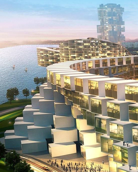 疯狂的建筑,疯狂的韩国人其实不止阿联酋有那些令人乍舌的建筑以及雄心勃勃的造城计划,韩国在这方面毫不示弱,就目前我所知道的,就有松岛未来城、摩天蜂巢城,加上本篇的安山(ansan)未来城,韩国在未来建筑和城市上的“疯狂”程度,就像其打入世界杯决赛一样让人不可思议。