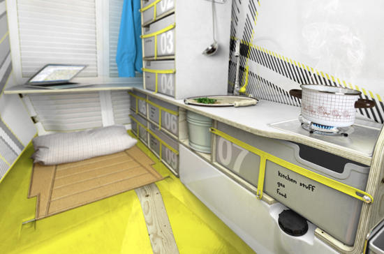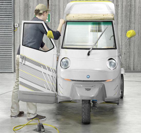德国设计师Cornelius Comanns在一辆小三轮车的空间内,容纳了床、工作台、衣橱、炉灶甚至冰箱的功能集合!很难想像如此狭小的空间,如果没有创造性的设计,怎么来达到目的。实际上,床折叠起来,就变成了驾驶座椅!