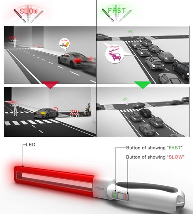 你大概见过摇摆LED显示时钟,就是可以让多个LED运动,在空中呈现数字来表示时钟,这一设计利用的是视觉暂留原理。现在,设计师Chih Wei Lai和Chi Wang将这一原理应用到交通指挥棒上,带来了Swing Baton。这一简单的改变会让交通指挥棒大大提升性能、变的更为醒目和直观,协助交警对交通疏导起到事半功倍的效果。但是,警察叔...