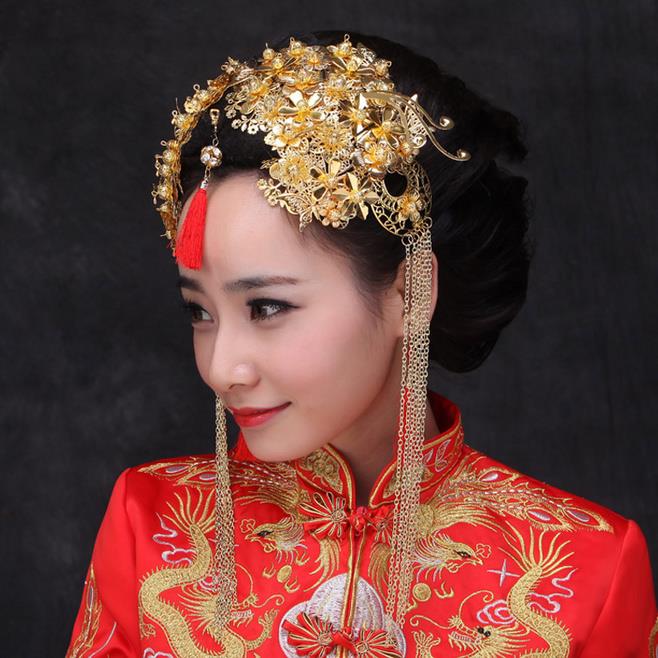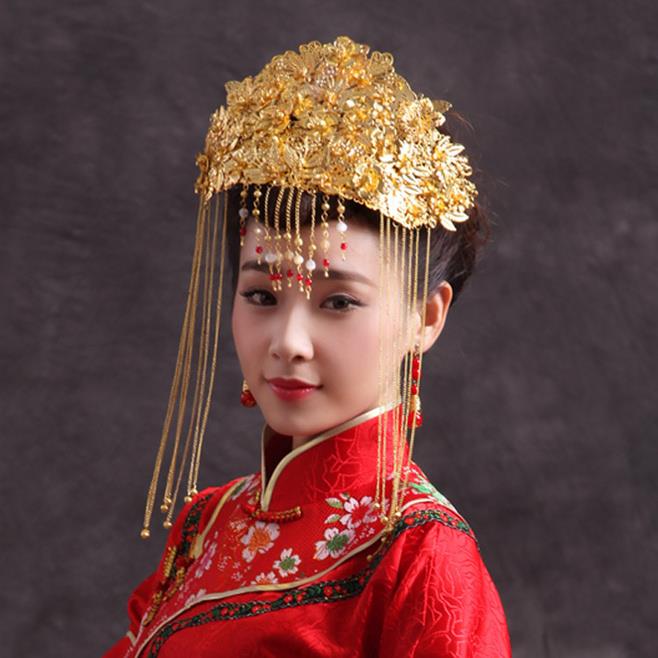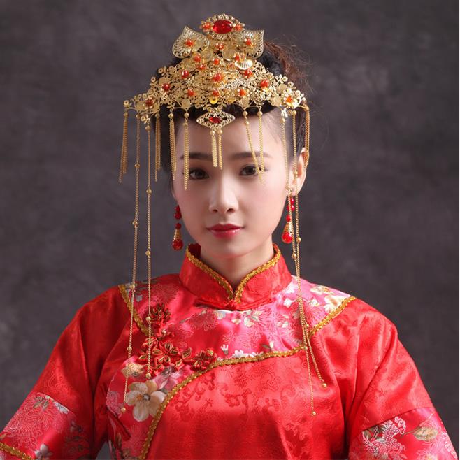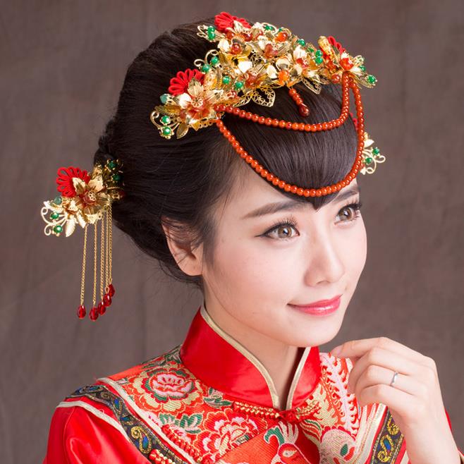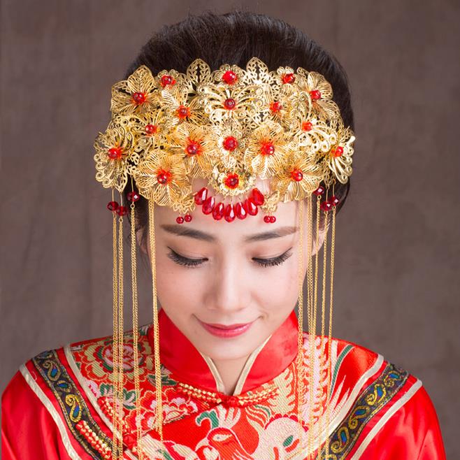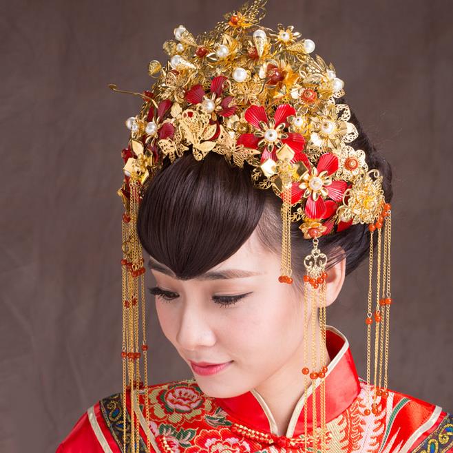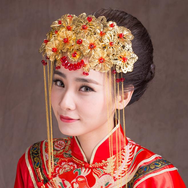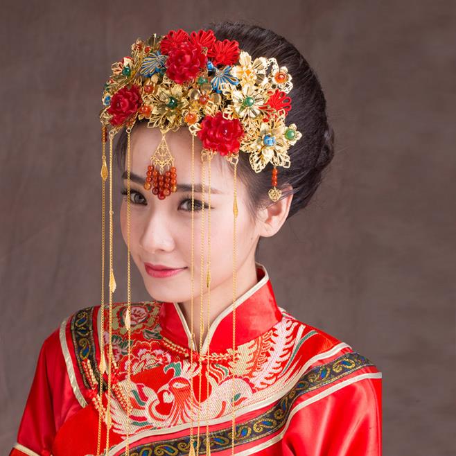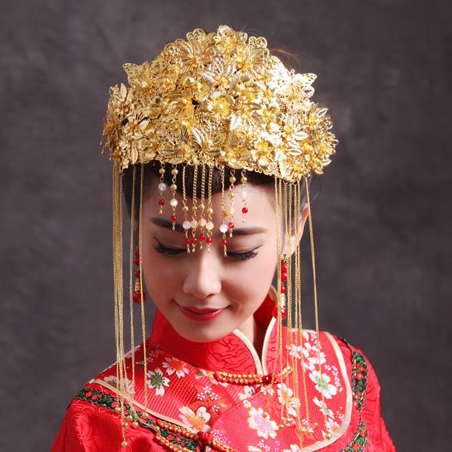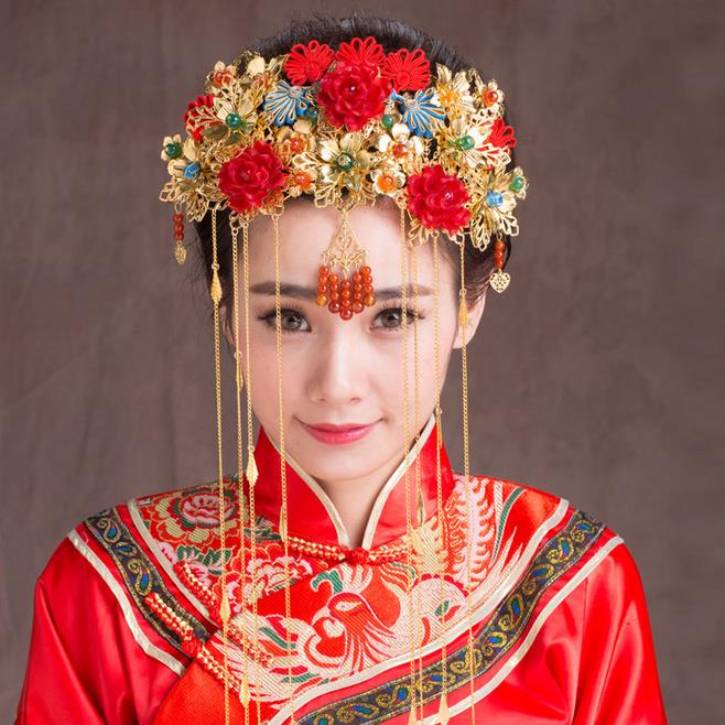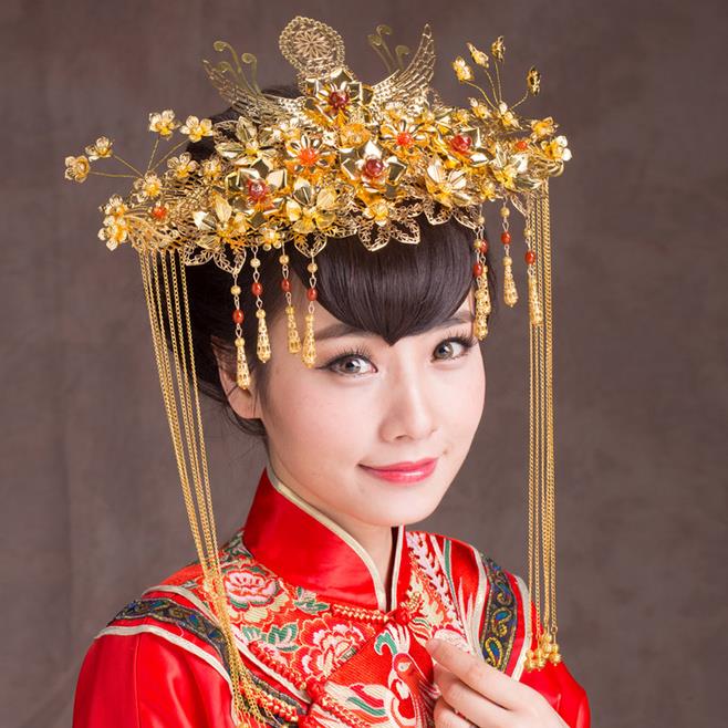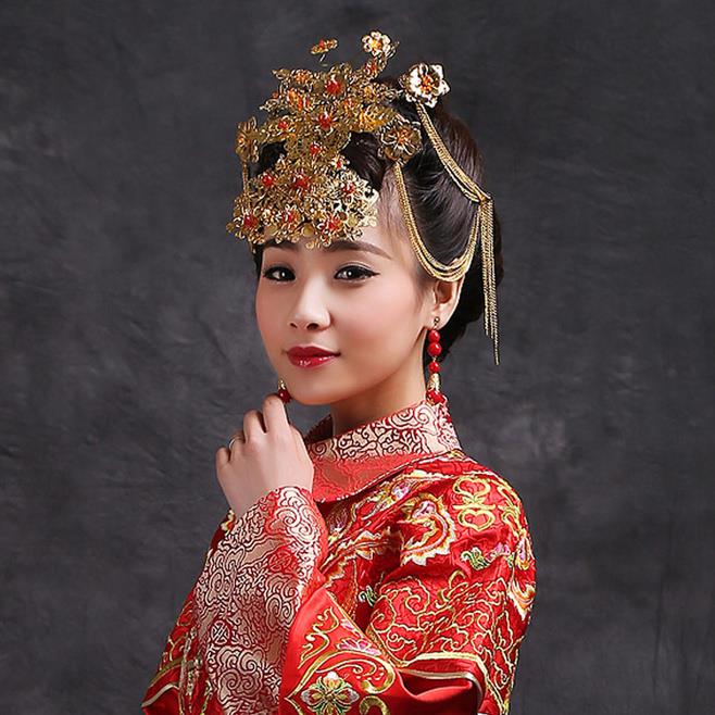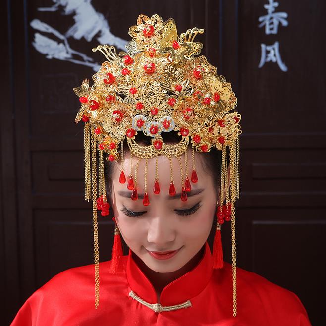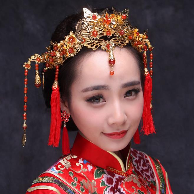 玛瑙凤冠“黄金缕”中式婚庆古典古装新娘头饰 簪子流苏